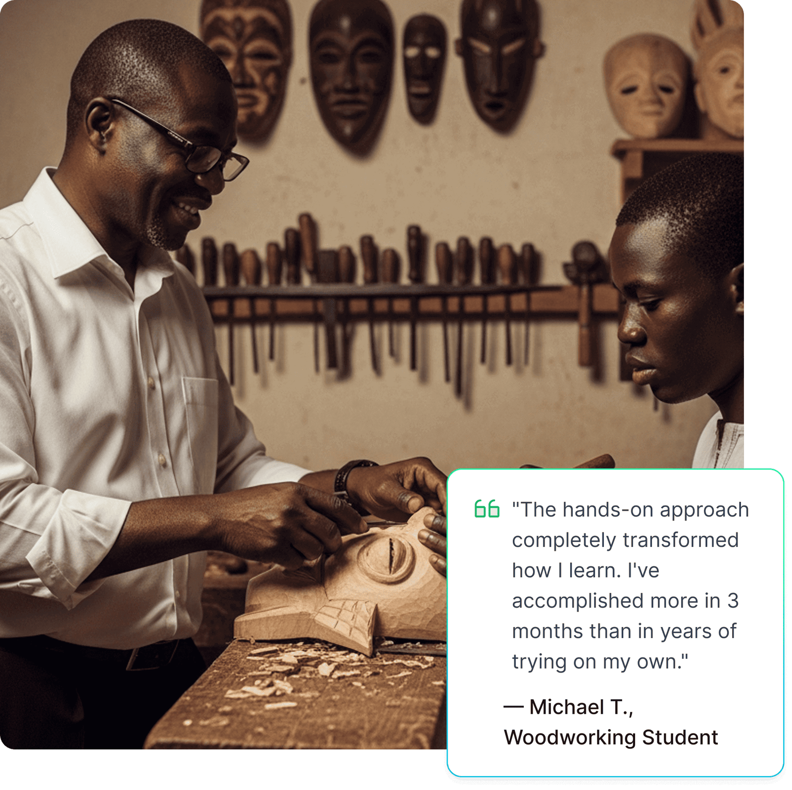 Master practical skills with expert-led courses and personalized feedback. From cooking to carpentry, learn by doing.